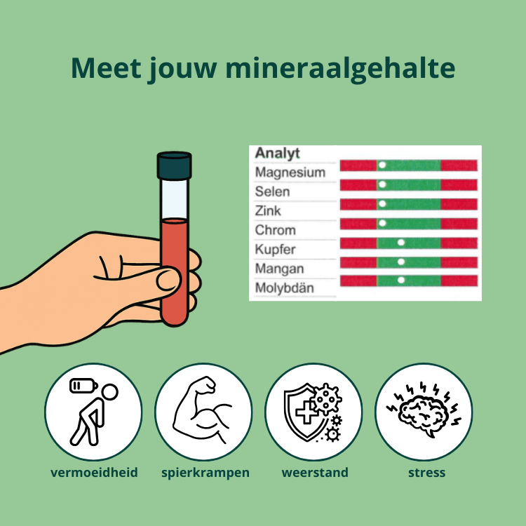 De meest uitgebreide mineralen test geeft een uitgebreid overzicht van zowel essentiële mineralen, elektrolyten als toxische metalen, en is daarmee een verdieping ten opzichte van de basis mineralentest.