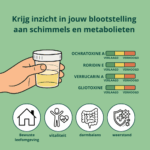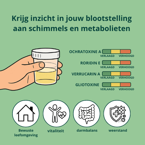 Met deze test krijg je inzicht in blootstelling aan de stoffen die door schimmels worden geproduceerd. Zo krijg je waardevolle informatie om bewuste keuzes te maken en je leefstijl en omgeving beter af te stemmen op jouw persoonlijke balans en vitaliteit.